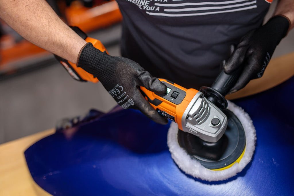 - Große Auflagefläche: 150 mm Polierteller mit Klettaufnahme für schnellen Padwechsel